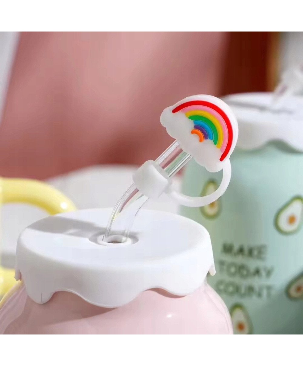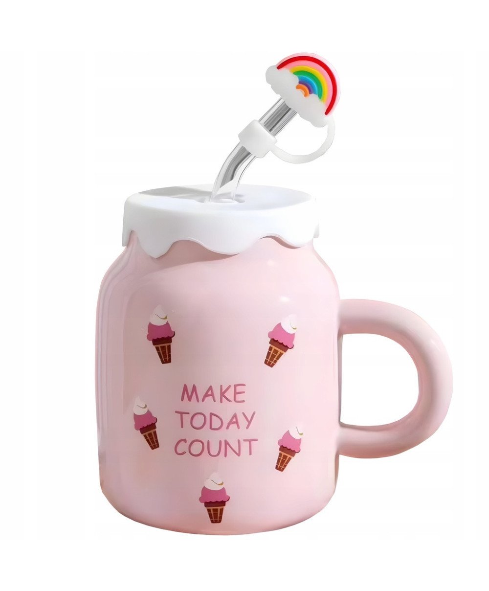 KUBEK CERAMICZNY 450ML ZE SŁOMKĄ + POKRYWKĄ DO KAWY HERBATY DUŻY NAPOJU