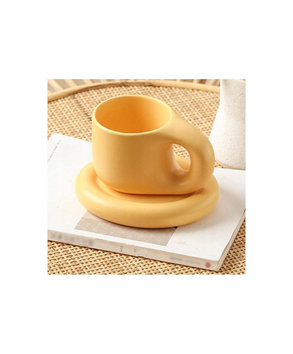KUBEK CERAMICZNY 400ML Z GRUBYM UCHEM PODSTAWKĄ KAWY HERBATY DUŻY SPODKIEM