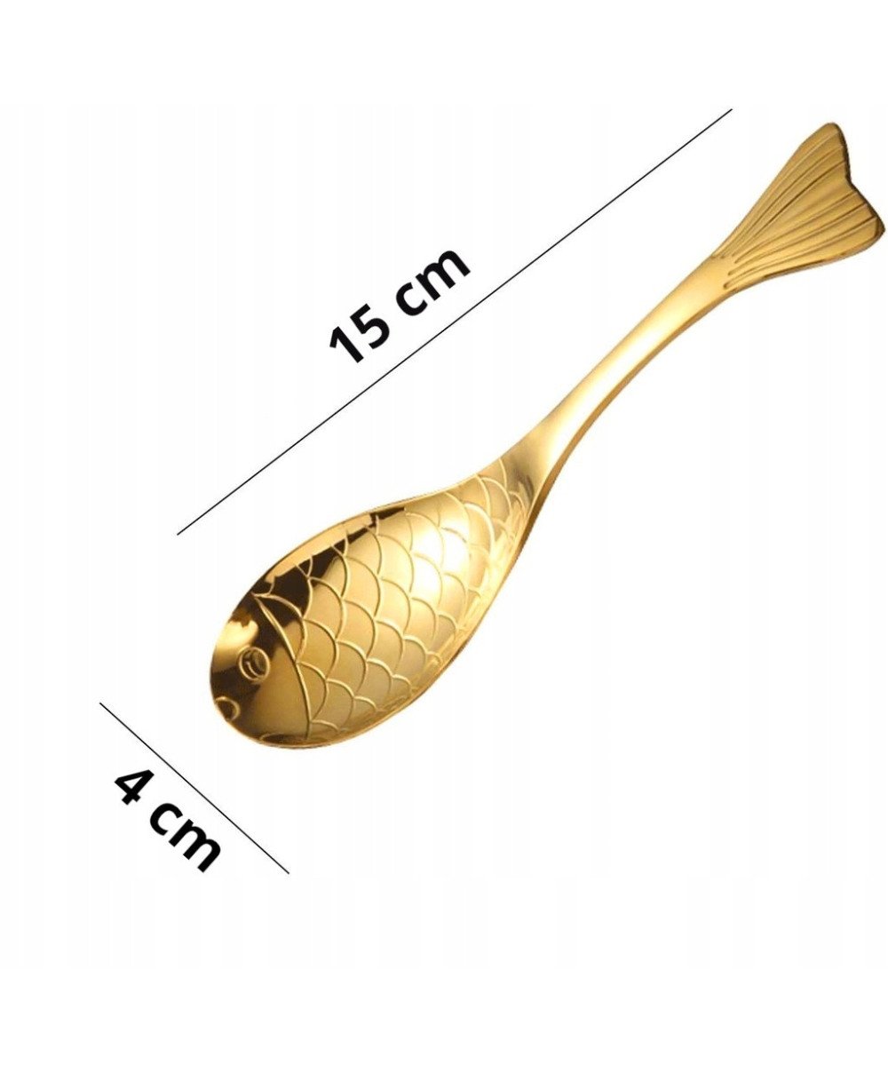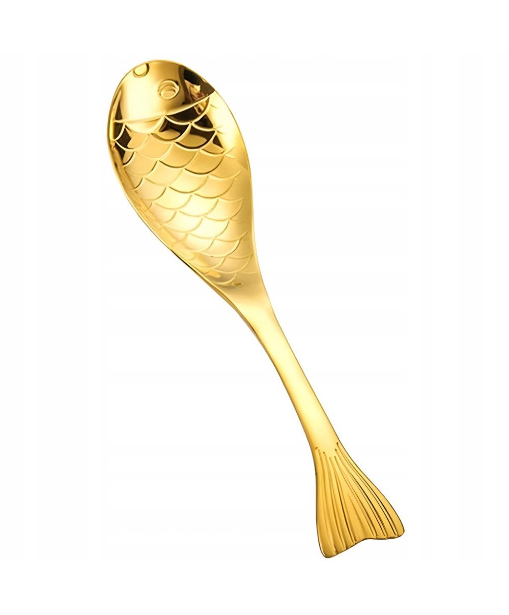 OZDOBNE ŁYŻKI ŁYŻECZKI DESEROWE ZE ZŁOTĄ RYBKĄ KOTEM STAL NIERDZEWNA SUS304