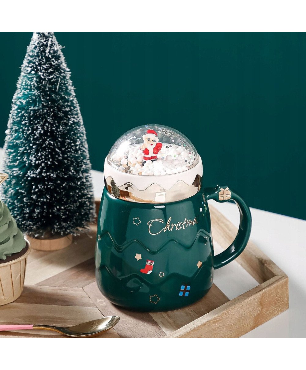 DUŻY KUBEK ŚWIĄTECZNY 450ML CERAMICZNY Z POKRYWKĄ MIKOŁAJ NA PREZENT ŚWIĘTA