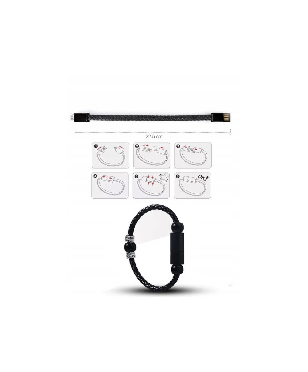 BRANSOLETKA SKÓRZANA KABEL PRZEWÓD USB C/B/IPhone